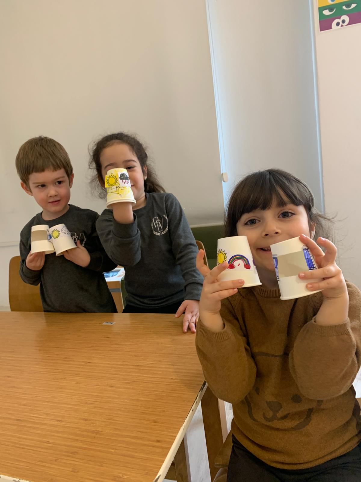Okul öncesi 5 yaş grubu öğrencilerimiz bu haftaki İngilizce dersinde çeşitli etkinlikler yaparak bazı hava durumlarının isimlerini öğrendiler. Etkinliğe hava durumlarının olduğu kağıtları boyayarak başlayan öğrencilerimiz ardından bu görselleri kesip karton bardakların üzerine yapıştırdı. Ellerinde bulunan diğer bardaklara ise üç boyutlu pencereler yaparak renklendiren verilen yönergeler doğrultusunda ise tasarladıkları bu bardakları çevirip hangi hava olayına denk geldiği söyleyen öğrencilerimiz keyifli bir etkinliğimizi daha tamamlamış oldular.