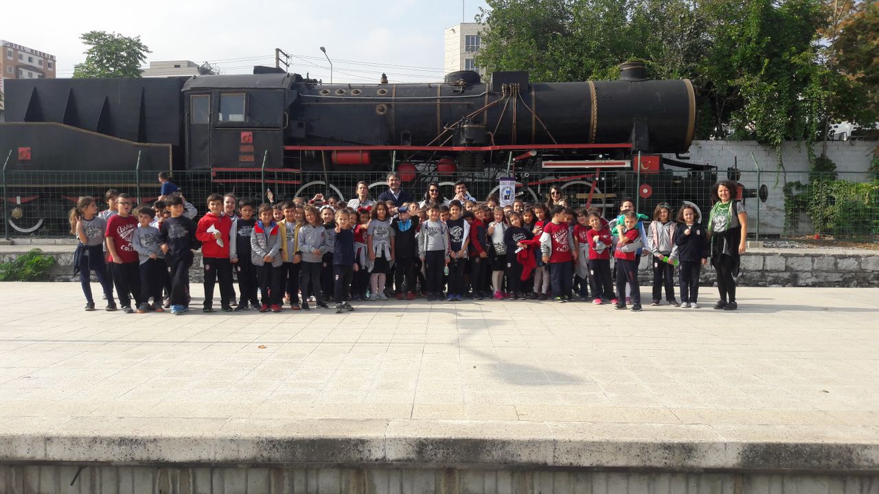 Drama zümremiz, eylül ayının son haftasının Devlet Demir Yolları Haftası olarak kutlanması nedeniyle Denizli Tren Garında 2 ve 4. sınıflarımızla bir drama çalışması gerçekleştirdi. 2 Ekim 2017 ve 5 Ekim 2017 tarihlerinde gerçekleşen drama çalışmasına Vagon Teknisyeni Şefi Levent Gazalcı da katıldı. Levent Gazalcı öğrencilere bu mesleği seçmek istediklerinde nasıl bir yol izlemeleri gerektiği konusunda bilgi verdi. Ayni zamanda buharlı ve modern trenin tarihçesi, demirin tren için önemi, trenin hızı, durma hızı, hemzemin geçit gibi konularda öğrencilerimizi bilgilendirdi. Bilgilendirmelerin ardından öğrencilerimiz trene bindiler. Daha sonra gruplara ayrılarak ‘ayrılık’ ve ‘buharlı trenin icadı” temalı bir canlandırma yaptılar.