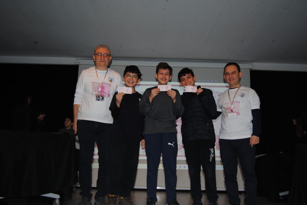 Okulumuz matematik zümresi tarafından her yıl düzenlenen, ünlü matematik Profesörü Cahit Arf’ı Anma Günü, 26 Aralık Cuma günü gerçekleştirildi. Etkinlik kapsamında Cahit Arf’ın hayatı ve matematiğe yaptığı önemli katkıların ele alındığı tanıtım videosu okulumuz öğrencileri tarafından ilgiyle izlendi. Etkinliğe katılan 6. sınıf öğrencilerimiz, Kahoot uygulamasıyla düzenlenen bilgi yarışması ve 10 TL temalı puzzle etkinliğinde hem yarıştı hem de keyifli anlar yaşadı. Yarışmaları başarıyla tamamlayan ekibe, günün anısına üzerinde Cahit Arf’ın görselinin yer aldığı 10 TL hediye edildi.