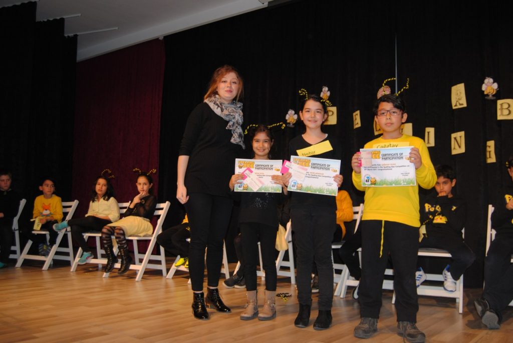 Okulumuz yabancı diller bölümü tarafından düzenlenen ve her yıl iple çekilen Spelling Bee yarışmalarımızı bu yıl da 3, 4 ve 5. sınıf düzeylerinde keyifle ve heyecanla gerçekleştirdik. “Spelling Bee”, kelimeleri akıcı bir şekilde harf harf kodlamayı aynı zamanda da telaffuz hatalarını ve yazım yanlışlarını azaltarak öğrencilerimizin öz güvenini arttırmayı hedeflediğimiz bir kodlama yarışmasıdır. Yarışmamız, sınıf içi yapılan elemelerde belirlenen öğrenciler arasında yapılmıştır ve her seviye kendi içinde yarışmıştır. Coşkulu geçen yarışma sonunda öğrencilerimiz, sertifikalarını ve birincilik ödüllerini okulumuzun Müdür Yardımcısı Sabriye KOZAK TÜTÜNCÜ’den almışlardır. Katılım gösteren tüm öğrencilerimize teşekkür ediyor ve birinci olan öğrencilerimizi kutluyoruz.