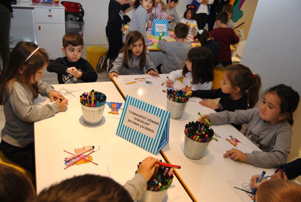 Okul öncesi öğrencilerimiz, 29 Ekim Cumhuriyet Bayramı kapsamında 1.sınıf öğrencilerimiz ile eşleşerek ‘’İstasyon’’ çalışması gerçekleştirdiler. İstasyonda “Atam izindeyiz, Atatürk Puzzle, Cumhuriyet Dönemi Yenilikleri ve Atatürk Çelengi çalışmalarına yer verildi. Öğrencilerimiz çalışma sırasında akran öğrenmesi ile Atatürk ve Cumhuriyet hakkındaki bilgilerini birbirleri ile paylaştılar. Okul öncesi öğrencilerimiz Atatürk ve Cumhuriyet temalı şarkılarını 1. sınıf öğrencilerimize söyleyerek etkinliği sonlandırdılar.