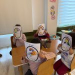Okul öncesi 5 yaş grubu öğrencilerimiz İngilizce dersinde günün evrelerini öğrendiler. İlk olarak Güneş ve Ay’ı boyayıp çubuklara yapıştırdılar. Daha sonra üzerinde yıldız ve gökkuşağı bulunan kağıtları boyayarak bu ögelerin günün hangi evresinde ortaya çıktığını söylediler. Bu etkinlik sayesinde öğrendikleri yeni kelimeleri pekiştirme fırsatı buldular.
