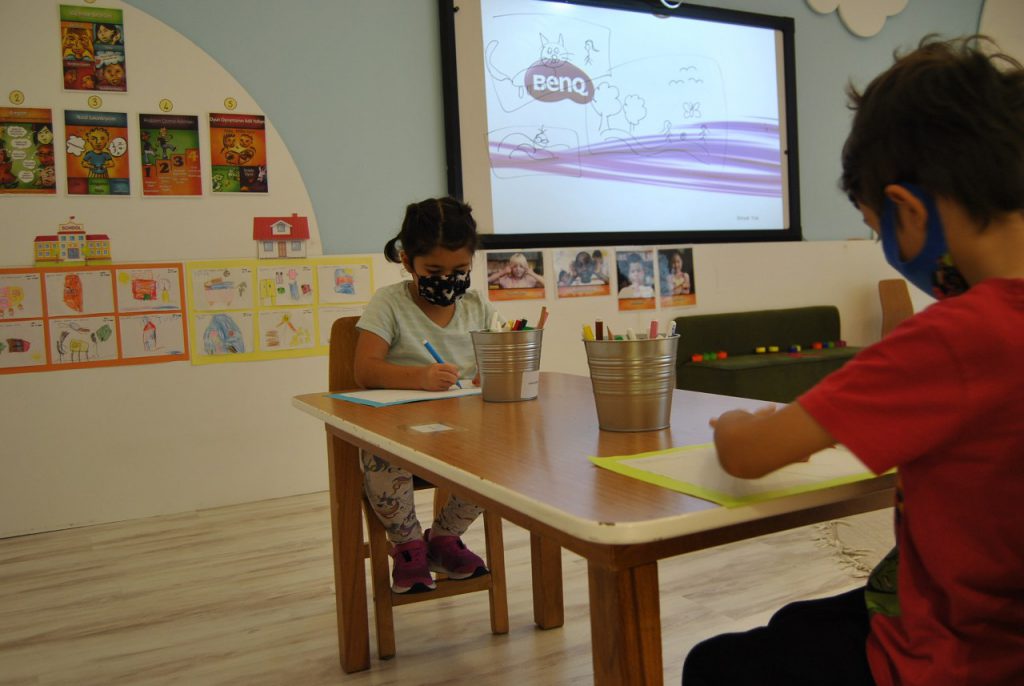 Okul öncesi öğrencilerimiz ve öğretmenlerimiz güçlü duyguları kontrol altında tutabilme becerisini geliştirmek için bir dizi etkinlik gerçekleştirdiler. Üzüldüğümüzde, kızdığımızda, aşırı heyecanlandığımızda, başarısızlık yaşadığımızda ne hissederiz? soruları üzerine öğrencilerimiz duygu paylaşımında bulundular. Sakinlik nedir, nasıl sakinleşirim? sorularına cevaplar ararken “Nasıl Sakinleşirim?” isimli posterler oluşturdular. Maske, sosyal mesafe ve hijyen kurallarına uyulan sınıflarımızda keyifle etkinliklerini tamamlayan öğrencilerimiz hem nasıl sakinleşecekleri ile ilgili yol haritalarını oluşturdular hem de keyifli dakikalar yaşadılar.