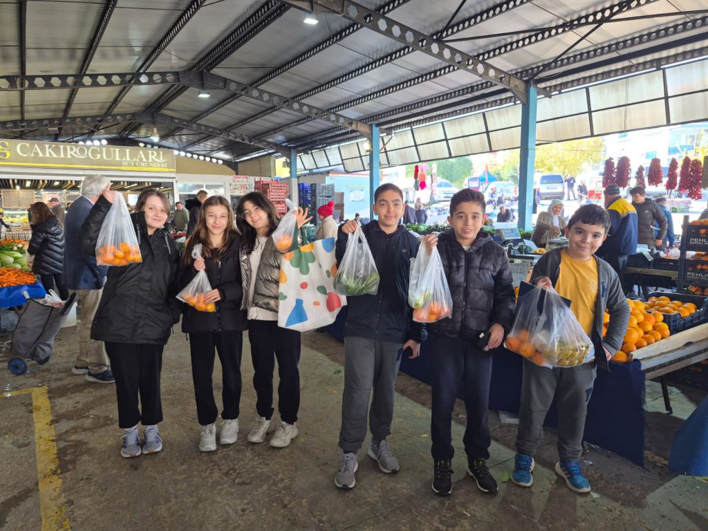 Okulumuz 6. sınıf öğrencileri, Yerli Malı Haftası kapsamında Türkçe dersi içinde yine anlamlı ve keyifli bir etkinlik gerçekleştirdi. Okulumuz Türkçe zümresi tarafından geleneksel olarak düzenlenen “Pazara Giden Öykücü” etkinliği çerçevesinde öğrencilerimiz, İncilipınar Semt Pazarını ziyaret etti. Öğrenciler hem Yerli Malı Haftası kapsamında bilinçli alışveriş yaptı hem de pazarcılarla röportaj yaparak gerçek yaşamdan deneyimler edindi.