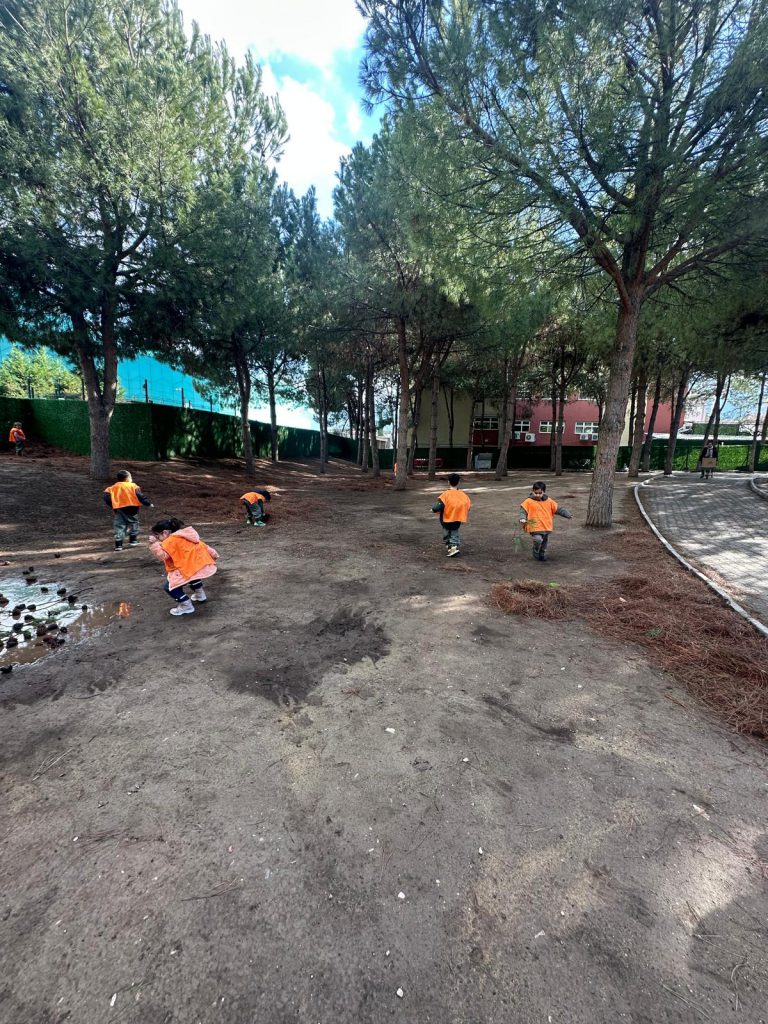Okul öncesi öğrencilerimiz, bir gecelik fırtınanın ardından okul bahçesinde unutulmaz bir öğrenme deneyimi yaşadı. O gece herkes uyurken rüzgâr okul bahçesine gizlice girdi. Ağaçların arasından geçti, dalları yere indirdi, kozalakları toprağın üzerine serpti. Sabah olduğunda bahçe artık bildiğimiz bahçe değildi; sanki doğa, çocuklar için görünmez bir oyun alanı kurmuştu. Bahçe süpürülmedi, dallar toplanmadı. “Dağılmış” denmedi. Okul öncesi öğrencilerimizle birlikte bahçeye çıkıldı ve rüzgârın bıraktığı izler takip edildi. Hangi ağacın nereye dokunduğu, yağmurun neleri değiştirdiği, toprağın renginin neden farklı olduğu birlikte incelendi. Her adımda doğa dinlendi, gözlemlendi ve keşfedildi. Ardından küçük bir mucize gerçekleşti. Bir öğrenci kozalaklarla bir yol yaptı. Bir diğeri dallarla sınırlar çizdi. Yapraklar yön oldu, taşlar durak…