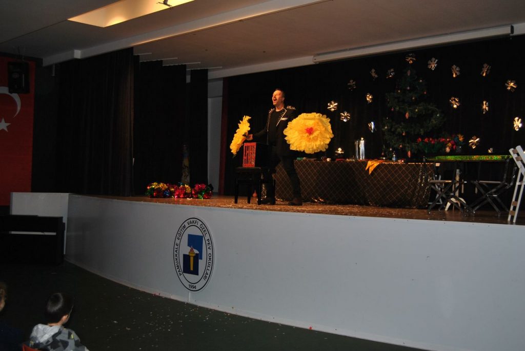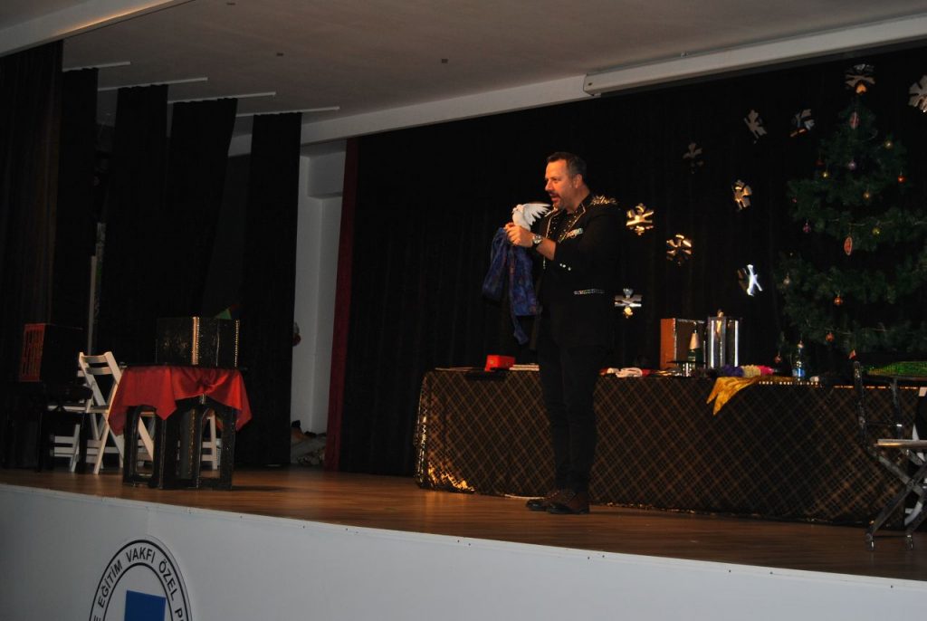 Özel PEV Okulları olarak yetenekli sihirbaz DENNİS ve ekibini ağırladık. İlkokul öğrencilerimizin katıldığı gösteri dönem sonuna yaklaştığımız şu günlerde  tazelenme etkisi yarattı. Yapılan illüzyon karşısında şaşkınlığını gizleyemeyen öğrencilerimizin aldığı keyif yüzlerinden okunuyordu. Sadece illüzyon değil aynı zamanda tiyatral oyunlar da barındıran gösteride  zaman zaman öğrencilerimiz ve öğretmenlerimizin sahneye davet edilip sürece dahil edilmesi  hafızalara tatlı bir anı olarak kazındı.