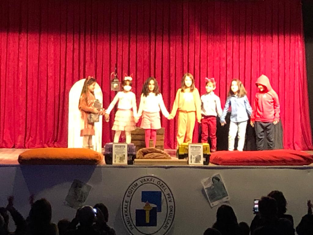 Şu güzel dünyamızda birlikte yaşadığımız dostlarımızdan kedilerimizi, tiyatro kursu öğrencilerimiz sahneye taşıdılar. Öğrencilerimiz “Miyav” adlı oyun ile onların yaşadıklarını sahnelediler. Üç kedinin başlarından geçen macera ve mücadele serüvenini işleyen oyunumuzun sahne, dekor, resim ve müzik gibi her alanında öğrencilerimiz görev aldılar. Gösteride görev alan öğrencilerimiz Mira Abacı, Yağmur Sungun, Sare Demirtürk, Zeynep Özkan, Çınar Savaş, İbrahim Doruk Arslanalp, Elif Hüma Ağırman, Öykü Öz ile gurur duyuyor, emekleri için tebrik ediyoruz.